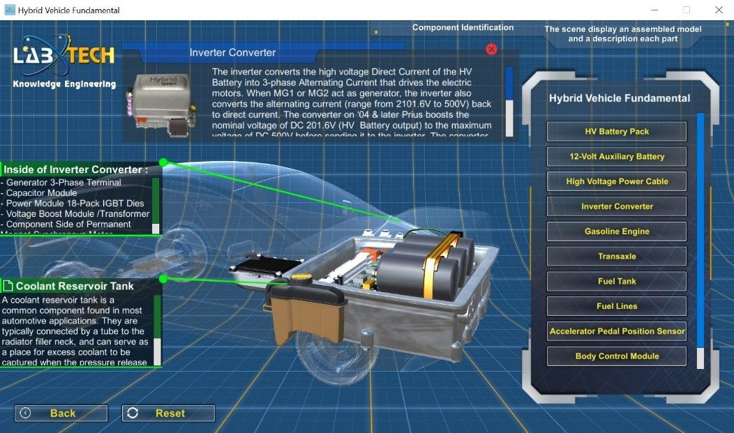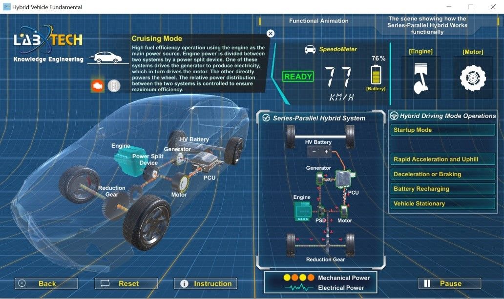 Labtech’s Virtual TVET interactive digital learning content are designed as self- paced topics that can be used by the teacher or student for independent learning (minimal teacher involvement). The content can now be used online in the Labtech Academy (www.labtech-academy.com ). The learning materials or topics are designed to cover from the introduction to automotive systems such as basic engine fundamentals, electricity and electronics, braking systems, wheels and drive systems, steering and suspension systems. It also goes onto developing the students’ knowledge and skills leading to more advanced studies such as petrol and diesel fuel, systems, engine management, transmissions, and hybrid vehicles.